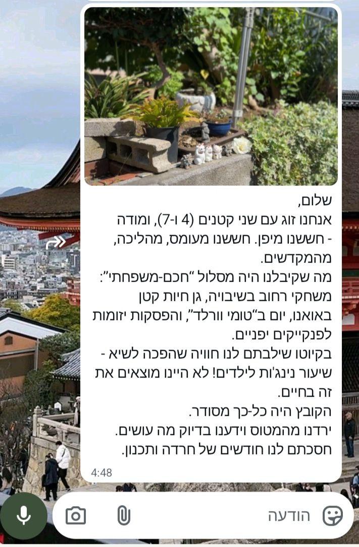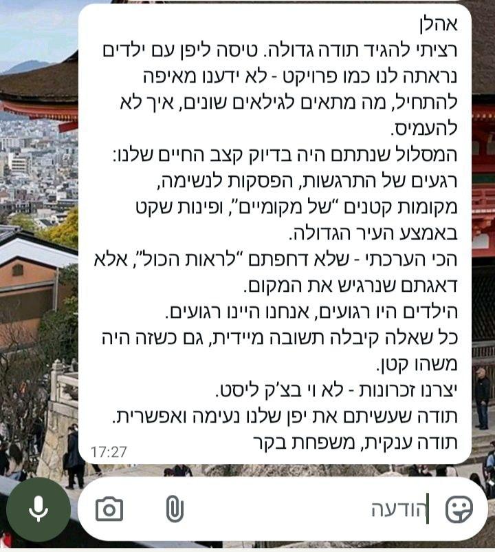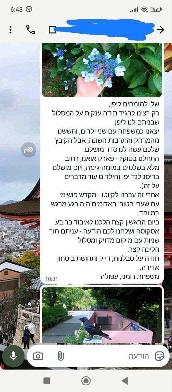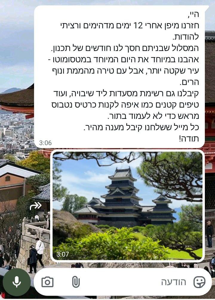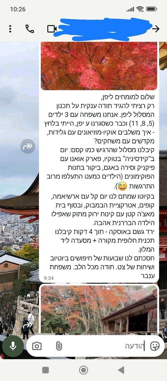 I traveled to Japan for 10 days on my own and really wanted to make the most of every day without spending weeks planning. I contacted Itinerary Expert, and the personalized plan I received made everything easy. Train connections, timing between temples, quiet neighborhoods in Tokyo, and even a suggestion for a small local ramen bar where no tourists go. When I missed a train in Kyoto and panicked about the schedule, I messaged and got a quick alternative route that worked perfectly. Highly recommend.