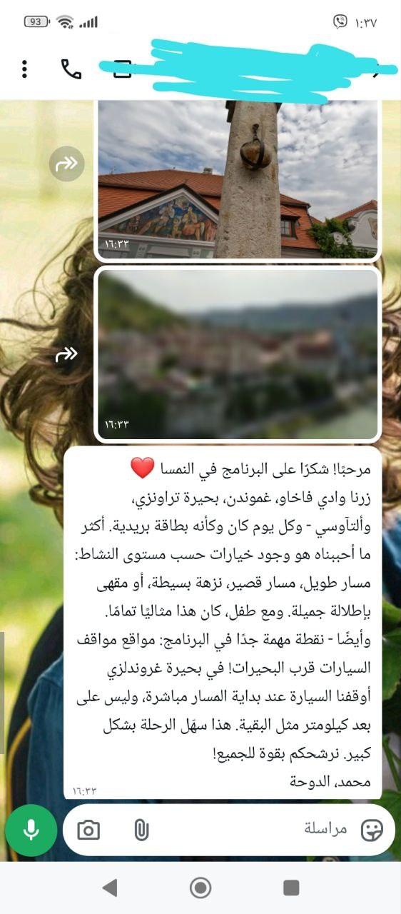 عائلة حبوشة، بيتح تكفا شكرًا لك يا أوري ، خبير السفر إلى النمسا، على مساعدتنا في تحقيق حلمنا والانطلاق في رحلة لا تُنسى عبر البلاد. فقد أعدّ لنا أوري برنامجًا شخصيًا متكاملًا، مع وصف دقيق للأماكن الخلابة وتوصيات يومية مفيدة لكل جزء من الرحلة. كل لحظة من مغامرتنا – من استكشاف المعالم التاريخية المدهشة إلى اكتشاف الجواهر الخفية التي لا يسمع عنها معظم الزوّار – كانت ببساطة مثالية.