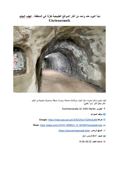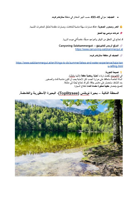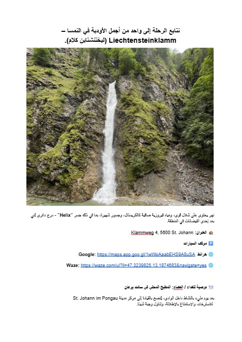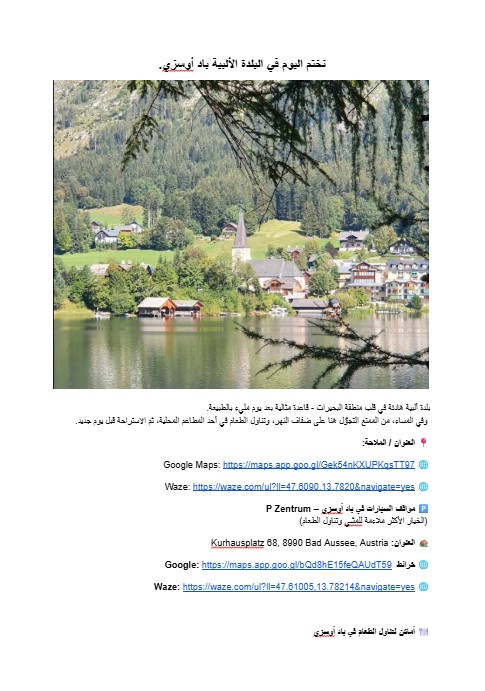 اكتشف القرى الألبية الخلابة، والبحيرات الساحرة، وزوايا الطبيعة المخفية التي لا يصل إليها معظم المسافرين. استمتع بجولات طبيعية مذهلة، واستكشف حدائق ترفيهية مناسبة للعائلات، وتذوّق المأكولات النمساوية الأصيلة بعيدًا عن المسارات السياحية التقليدية.
