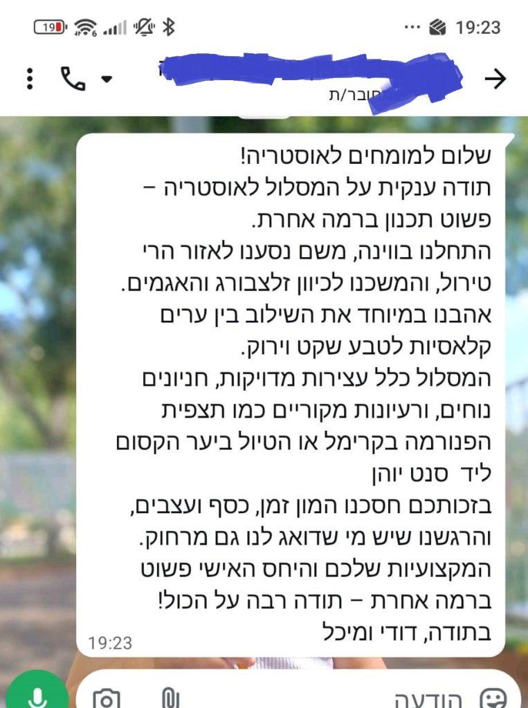 אנחנו זמינים עבורכם בווטסאפ לאורך כל הדרך, לעזרה, התאמות ושאלות בזמן אמת, כדי שתוכלו לטייל בראש שקט ולדעת שיש מי שדואג לכל פרט.