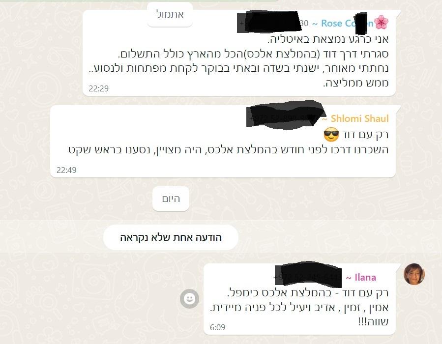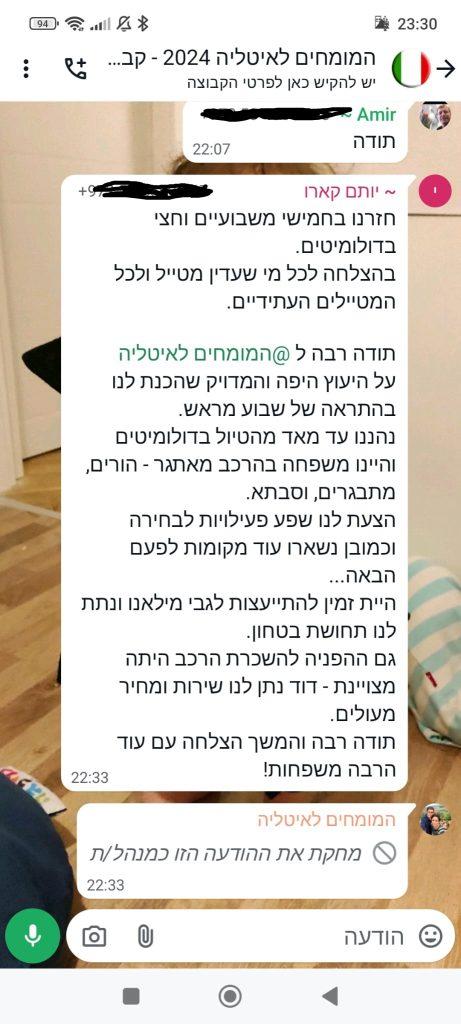 • אנחנו זמינים לשאלות ובקשות גם בזמן הטיול