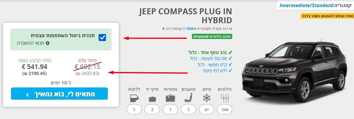מחיר מלא מול מחיר עם ההנחה הבלעדית – 61 אירו פחות (243 ש״ח) בלחיצת כפתור אחת.