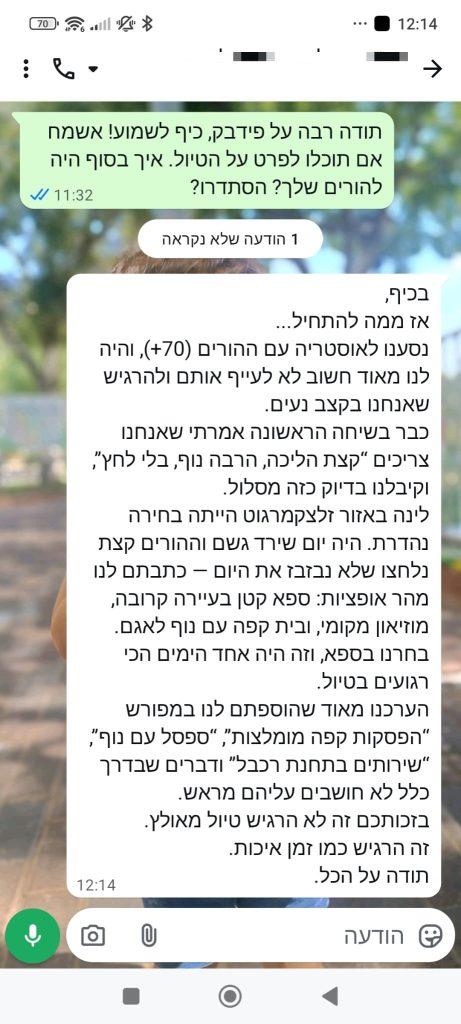 מה אנחנו מציעים? אמי גינדי תורידו מעצמכם את כל הדאגות מתכנון הטיול! יחד עם המומחים שלנו תוכלו לבנות את המסלול המושלם עבורכם – מקיף, נוח, ומותאם לכל החלומות, הרצונות והצרכים שלכם. נדאג לכל הפרטים הקטנים, כדי שתוכלו פשוט להתרכז בחוויה ובכיף של הטיול. אנחנו מתעסקים בבניית מסלולים אישיים מאז 2015, ובמהלך השנים יצרנו אלפי מסלולים מותאמים אישית ללקוחות מרוצים. חוסכים לכם זמן ובלגן. השירות שלנו חוסך לכם שבועות של חיפושים, קריאה, התלבטויות ותכנון מסובך. במקום לבזבז זמן אינסופי – אתם מקבלים מסלול מוכן, מדויק וברור. מסלול אישי שנוצר במיוחד עבורכם, מבוסס על ניסיון שטח של המומחים שלנו ועל פידבקים אמיתיים של מאות מטיילים – עם תגליות וטיפים שלא קיימים בשום מדריך טיולים. בחירת מקומות לינה – לפעמים חוסך לכם אלפי שקלים. נתאים לכם לינות מומלצות מתוך מאגר בדוק, כולל בדיקת זמינות בתאריכים שלכם. לעיתים נמליץ על מלונות שאינם "בלב המרכז" אבל נמצאים באזור מצוין, בטוח ונוח לטיול – מה שיכול להוזיל משמעותית את העלויות ולחסוך לכם אפילו אלפי שקלים. זמינים עבורכם גם במהלך הטיול. אנחנו מלווים אתכם גם בזמן החופשה עצמה, עם תמיכה מקצועית לכל שאלה שתעלה בדרך. אם מזג האוויר משתנה, אם יש שביתה, אירוע מקומי, עומסים או כל שינוי בלתי צפוי – אנחנו כאן כדי לעדכן, להכווין, ולהתאים את המסלול מחדש במידת הצורך. מסלול קל לתפעול – כולל קישורים ישירים לניווט. המסלול שאתם מקבלים כולל קישורים ישירות ל־Waze/Google Maps. ללא חיפושי כתובות חניה, ללא הסתבכויות, ללא לחץ – לוחצים, ויוצאים לדרך. רוצים להיות בטוחים שזה באמת משתלם לכם? כאן תוכלו לראות את החוויות של לקוחות שעברו איתנו תהליך של בניית מסלול אישי. לחצו כאן ונתחיל לעבוד יחד על המסלול שיחסוך לכם זמן, כסף ודאגות – ויהפוך את החופשה שלכם למושלמת. כמובן – כל פנייה ראשונית אלינו היא ללא תשלום וללא שום התחייבות. איך זה עובד