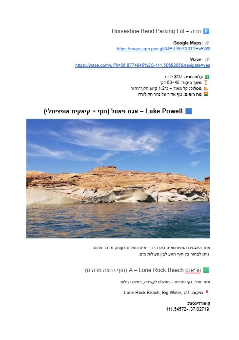 במהלך המסע שלנו, צילמנו כל רגע, מהזריחה המרהיבה בגרנד קניון ועד לאורות המנצנצים של לאס וגאס בלילה. התמונות האלה הן עכשיו זיכרונות יקרי ערך מההרפתקה שלנו. אלכסה המליצה לנו על מקומות שלא כתובים בספרי התיירות, אבל אלה הפכו את הטיול שלנו למיוחד באמת.