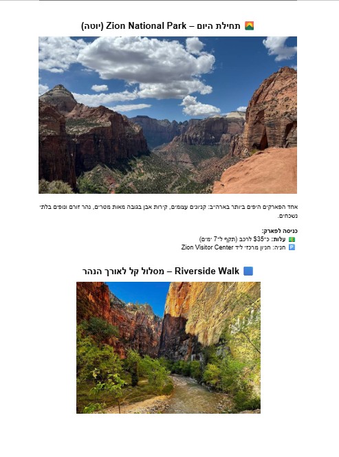 רוצים לקבל המלצות על טיולי טבע מרהיבים כמו Yosemite, Yellowstone או Grand Canyon?