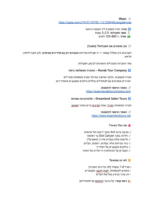 מסלול קל לתפעול – כולל קישורים ישירים לניווט. המסלול שאתם מקבלים כולל קישורים ישירות ל־Waze/Google Maps. ללא חיפושי כתובות חניה, ללא הסתבכויות, ללא לחץ – לוחצים, ויוצאים לדרך.