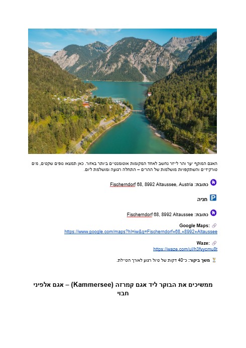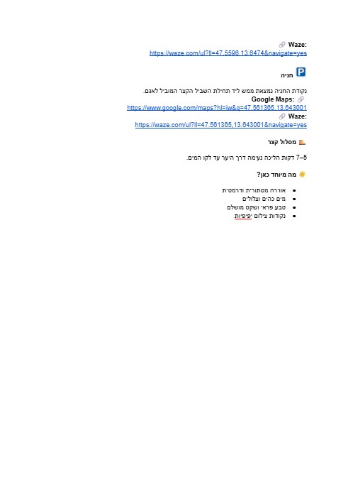 תקבלו טיפים חשובים והסברים מפורטים על תחבורה ציבורית וקישורים ישירים לגוגל מפות. בנוסף, נשתף אתכם במקומות נסתרים ומדהימים שרוב המטיילים כלל לא מגיעים אליהם – פינות קסומות שיגרמו לטיול שלכם להיות בלתי נשכח. אנחנו שמים דגש על הכנה קפדנית כדי להבטיח חוויה חלקה, עשירה ומהנה.