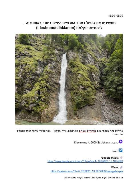 אנחנו מלווים אתכם לא רק בשלב התכנון – אלא גם במהלך הטיול לאוסטריה עצמו.