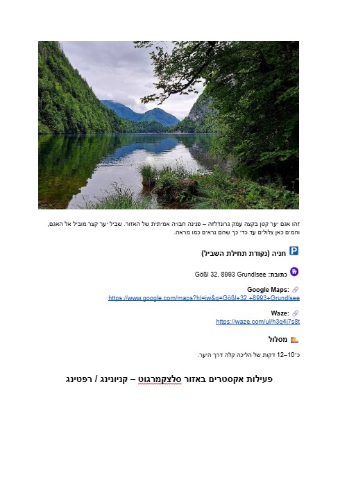 גלו כפרים אלפיניים ציוריים, אגמים קסומים ופינות טבע נסתרות שרוב המטיילים כלל לא מגיעים אליהן. חוו טיולי טבע מרהיבים, גלו פארקי שעשועים משפחתיים, וטעמו את המטבח האוסטרי האותנטי מחוץ למסלול התיירותי.