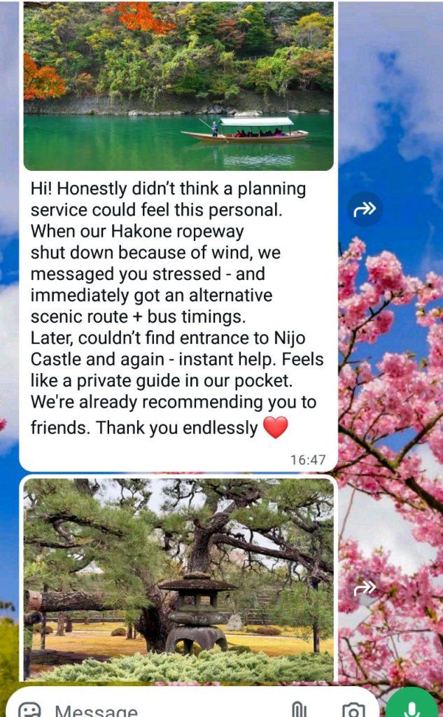 My love for Japan began the moment I arrived in Tokyo. The country amazed me with its harmony of ancient traditions, cutting-edge technology, breathtaking nature, and a culture unlike any other. Since then, Japan has become a part of my life, and I return there again and again. Today I help travelers discover the real Japan: I create personalized itineraries, give lectures, and prepare guests for their unforgettable journey. I would be delighted to open Japan for you too!