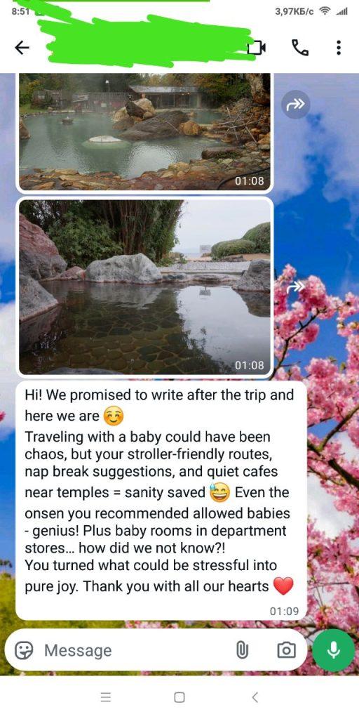 “We visited during light rain, and honestly, it was perfect. The forest smelled amazing, the orange torii looked brighter against the wet ground and the drizzle kept most people away. There’s a rest area halfway with matcha and snacks, which was a pleasant break for the kids. Just watch your step – the stone stairs get slippery.”