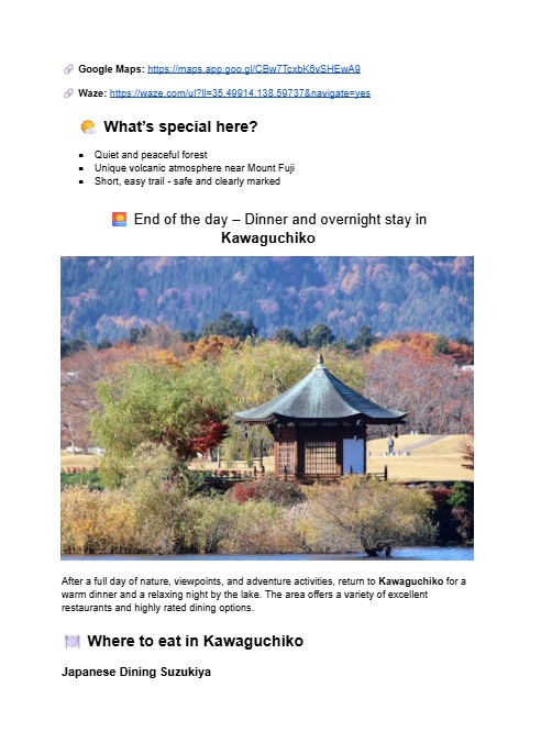 Special experiences. The itinerary will help you uncover hidden gems, taste authentic local culture, and turn every day into an extraordinary experience.