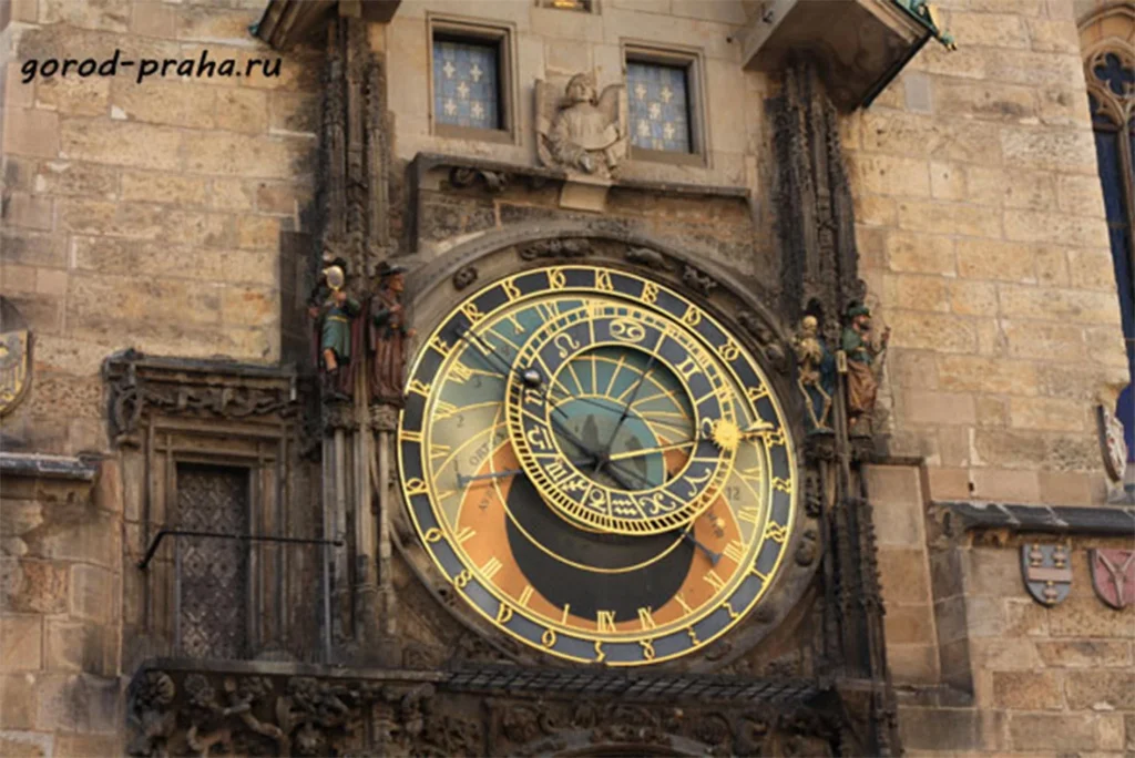 1 – Астрономические часы Праги. Одни из самых старых часов во всем мире. Созданы в 1410 г. часовщиком Микулашем из Кадани и астрономом Яном Шинделем. Установлены на южной стороне Староместской ратуши.