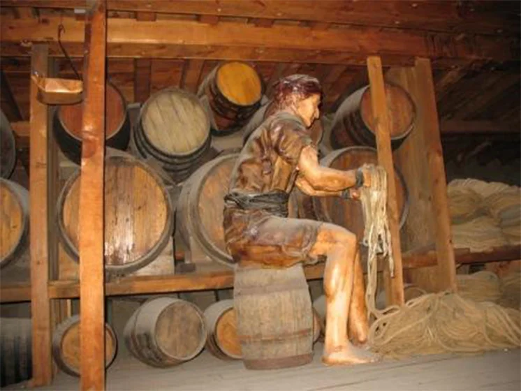 В центре экспозиции и в физическом центре музея стоит огромный макет средневекового корабля. Корабль можно обойти, на него можно подняться, в него можно заглянуть.